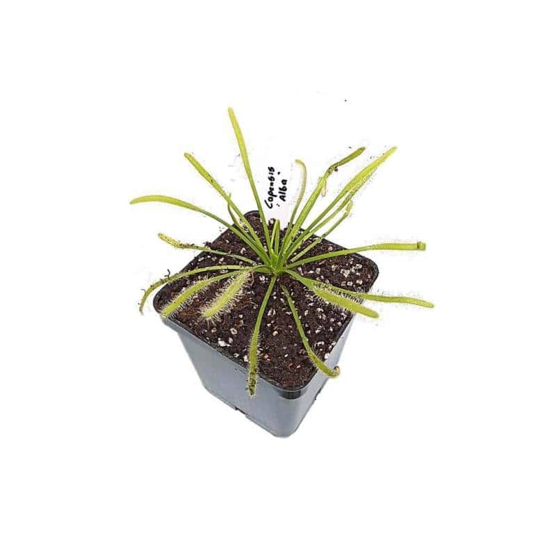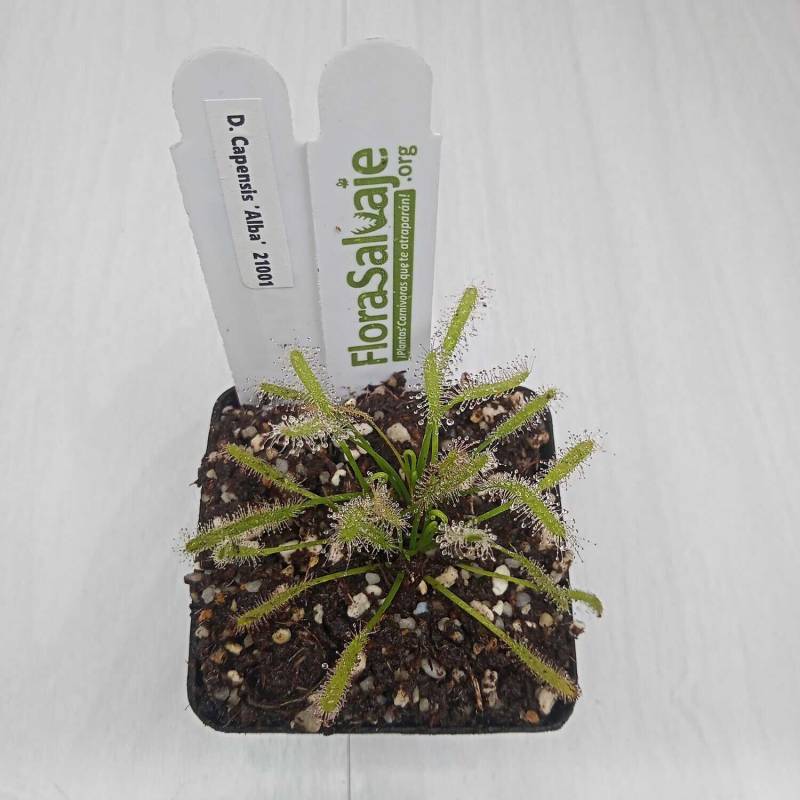 Descripción: Es una planta carnívora perenne de raíces rizomatosas y unos 30 cm de altura. Las hojas son lineares de 6,5 cm de largo, están recubiertas de unos vellos llamados tricomas que secretan un mucílago pegajoso cuya función es atrapar a los insectos que luego serán digeridos por las enzimas de la planta. Requiere de un riego frecuente y temperaturas por encima de los 4 ºC y alta exposición luminosa.