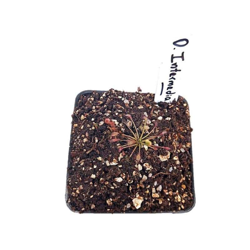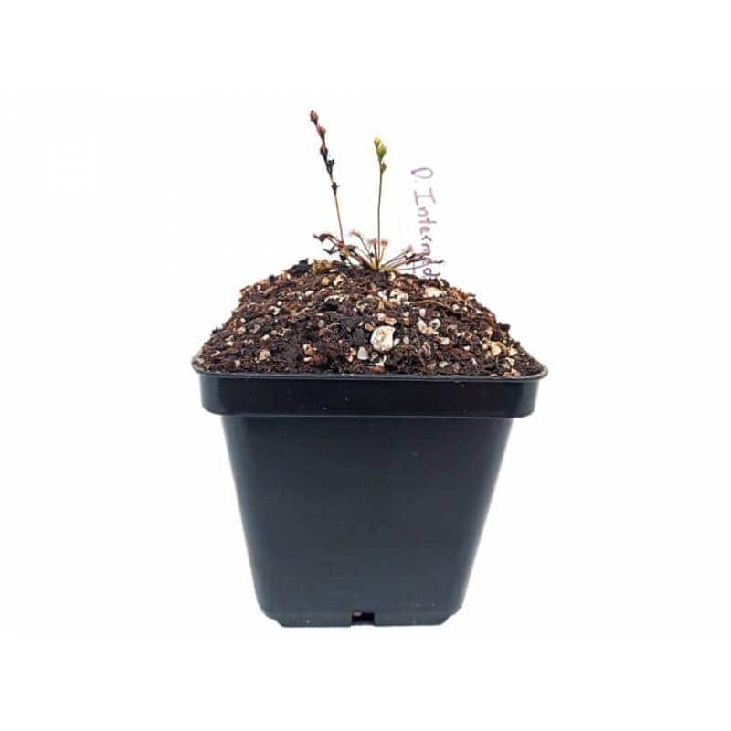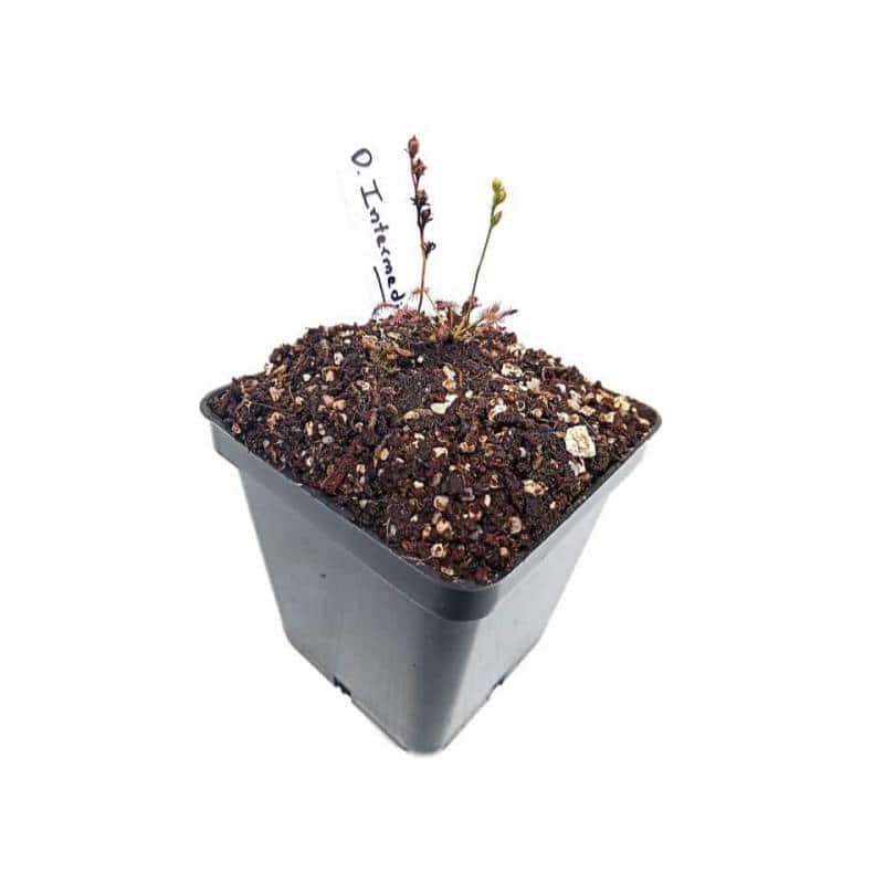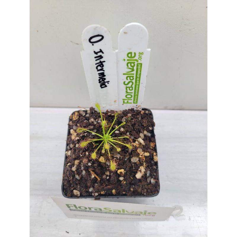 Descripción: Sus hojas en forma de espátula se extienden en una roseta. Es una de las droseras más resistentes y se adapta bien a diferentes rangos de temperatura. Sus tallos florales se levantan del centro de la planta y pueden producir múltiples flores de color blanco. Requiere una alta exposición luminosa y riego constante, preferiblemente por el método del plato.