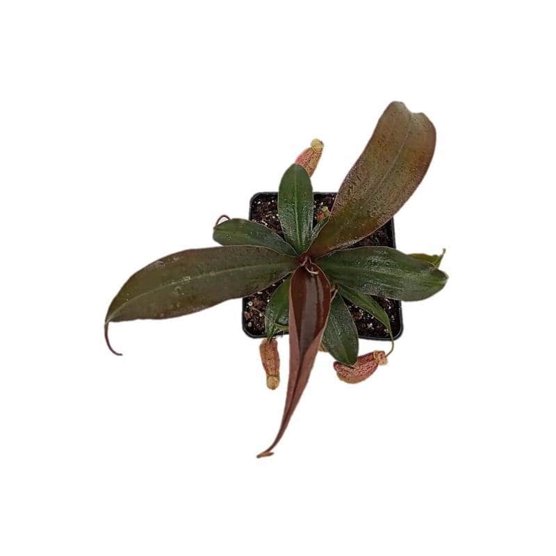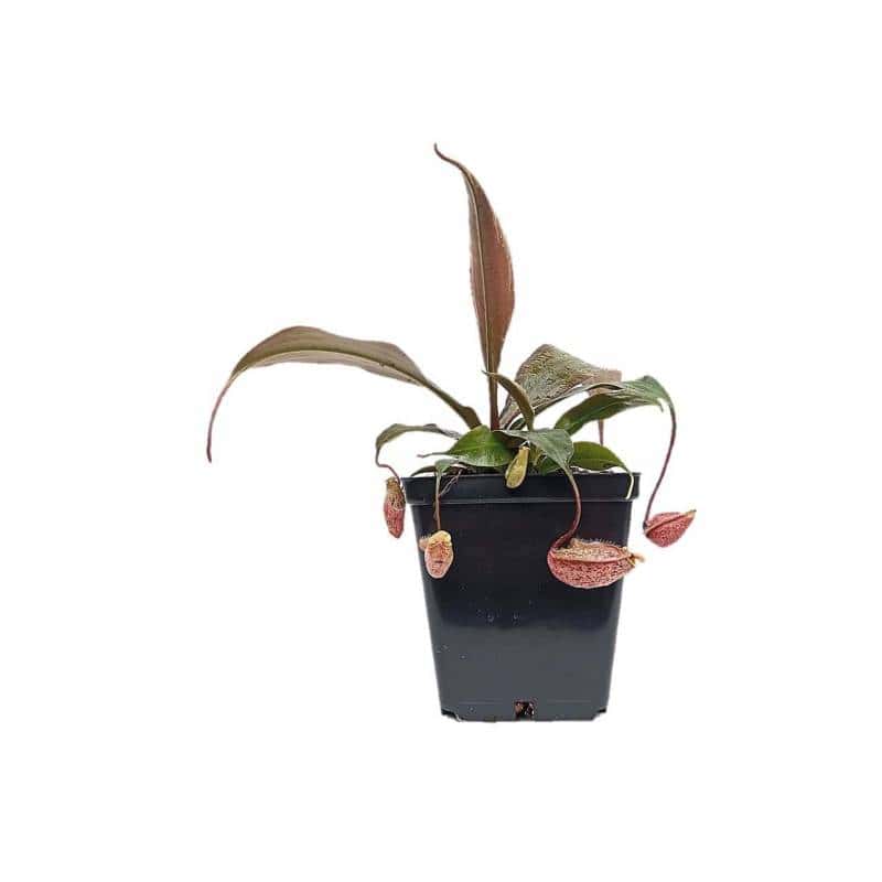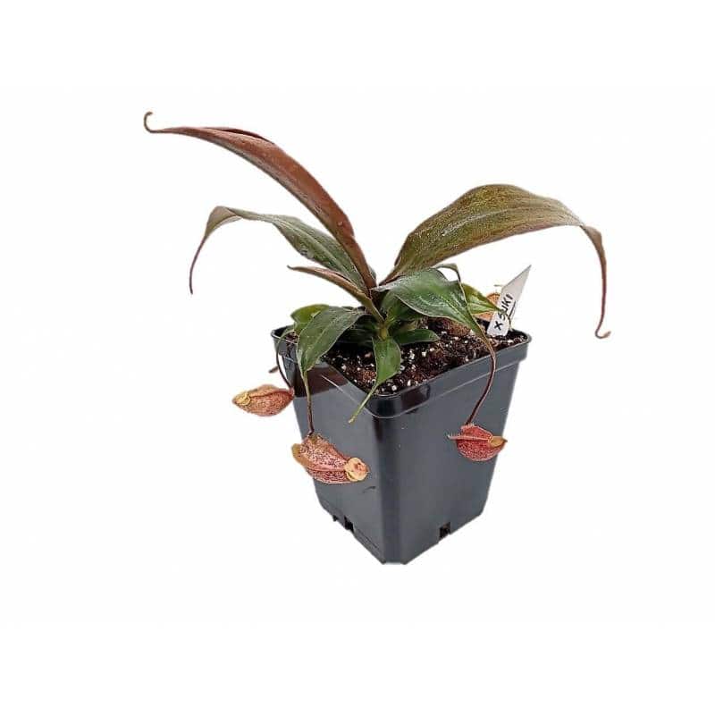 Descripción: Es una planta de jarra tropical carnívora hibrido entre Nepenthes Rafflesiana x Nepenthes Sibuyanensis, de color burdeos oscuro de rápido crecimiento con peristomas de color amarillo brillante.