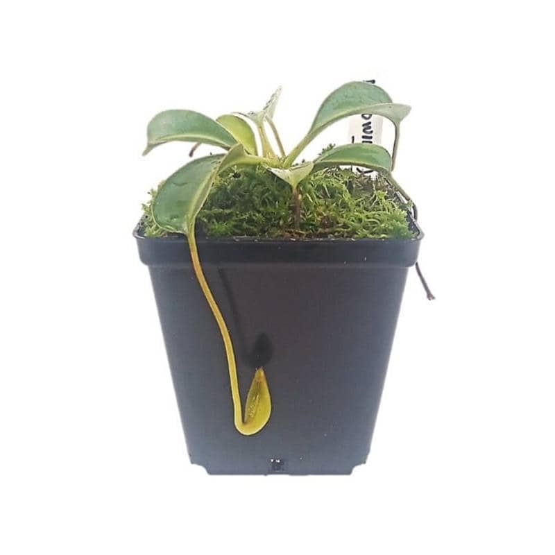 Descripción: Conocida por ser el viejo inodoro para musarañas. En su hábitat natural en Asia, esta planta de jarra tropical es famosa por sus extrañas jarras superiores que actúan como inodoros reales para las criaturas trepadoras. Los cántaros inferiores miden aproximadamente 4 pulgadas (10 cm) de alto, son de color marrón rojizo, cilíndricos, con un peristoma rayado medio y su tapa es la parte más fascinante, con apéndices largos como pelos.