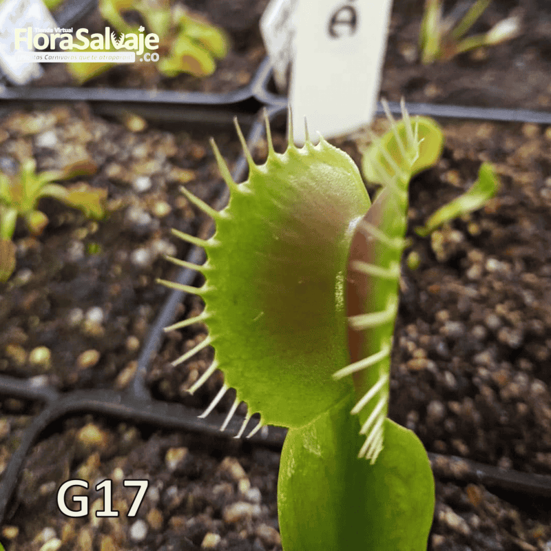 La Dionaea m. 'G17' (MEGATRAPS) es un cultivar con características de planta robusta. Posee coloración rojiza en sus cilios o dientes, trampas de color rojizo brillante, hojas verde-amarillenta y nervadura larga.