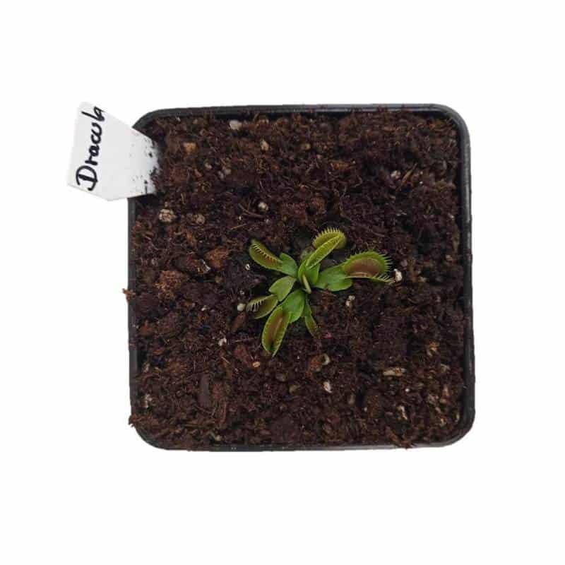 Dionaea "Drácula" es uno de los cultivares más bonitos que existen, desarrolla dientes parecidos a los de un tiburón, con una linea de sangre en el exterior del lobulo que asemeja a la mordida del conde Dracula. Este cultivar fue seleccionado de un semillero de Dionaea "G14 x Dentate", creado por el gran cultivador Trev Cox.