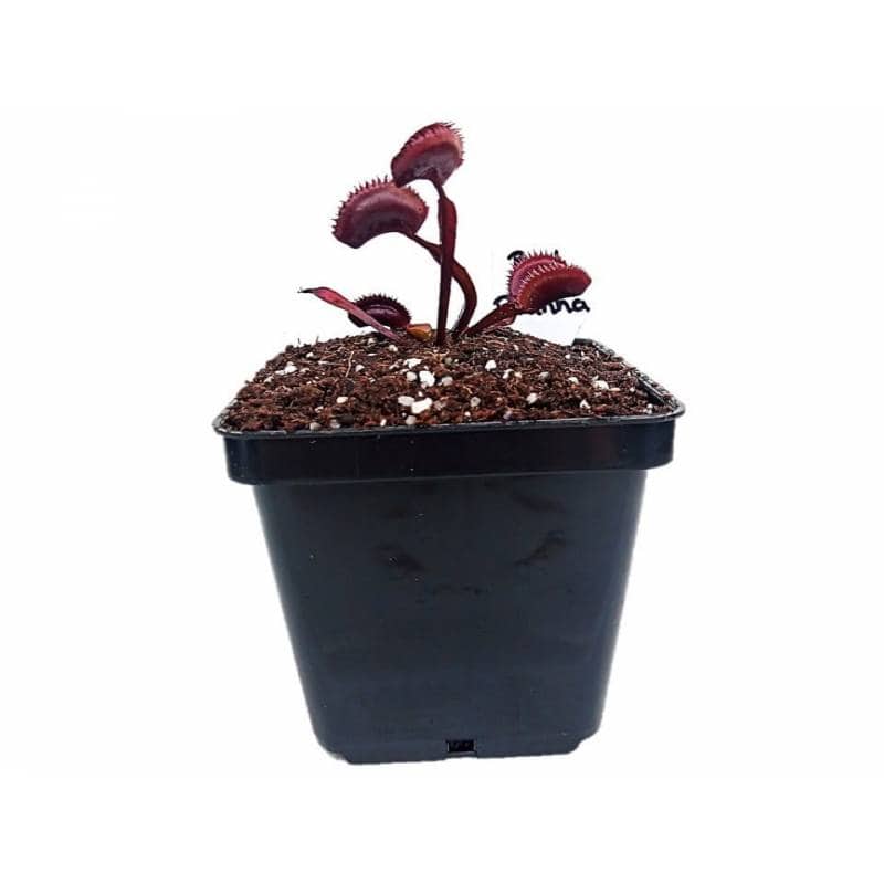 Descripción: Dionaea Red Piraña o Piranha lleva el nombre de un pez que limpia los huesos con sus poderosas mandíbulas y sus afilados dientes, tiene claramente una reputación que cumplir, y ciertamente la cumple de manera muy eficaz. Las trampas dentadas, teñidas de rojo oscuro, se encuentran en el extremo de las hojas largas y estrechas y revolotean en el aire, esperando a que pasen víctimas desprevenidas. Este cultivar tiene la coloración de Dionaea 'Red Dragon' y las espinas marginales de Dionaea 'Dentate Traps' y crece fácilmente al aire libre en climas templados, o en invernaderos.